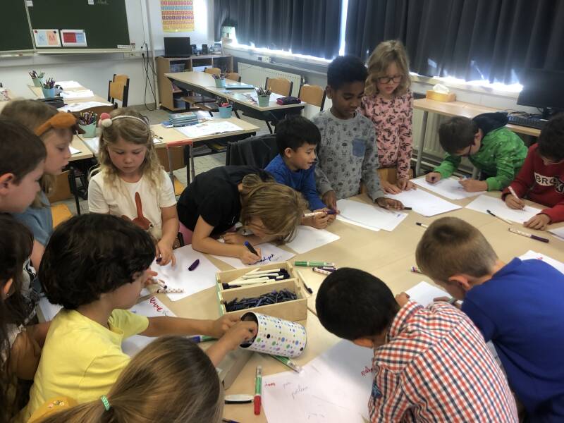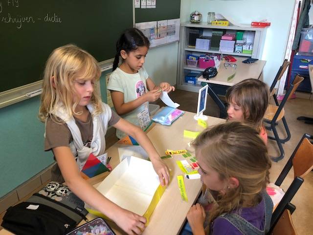 In een projectschool wordt uiteraard niet enkel klassiek lesgegeven. We proberen onze leerstof op zoveel mogelijk manieren in te oefenen. We leren van elkaar, we leren al doende, we leren op niveau, we leren bewegend, we leren met muziek en liedjes, ..