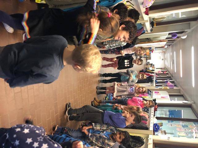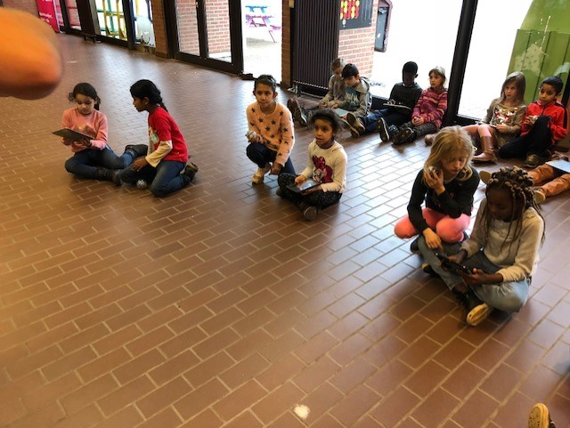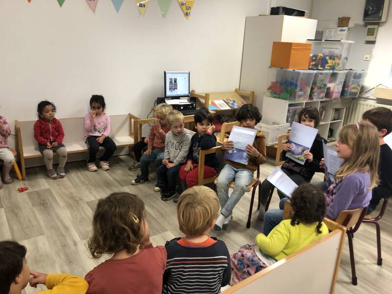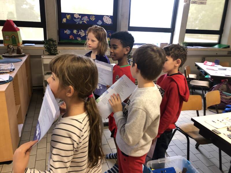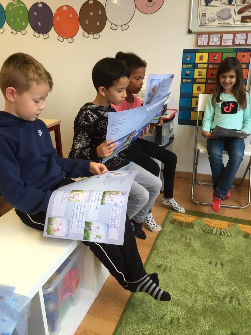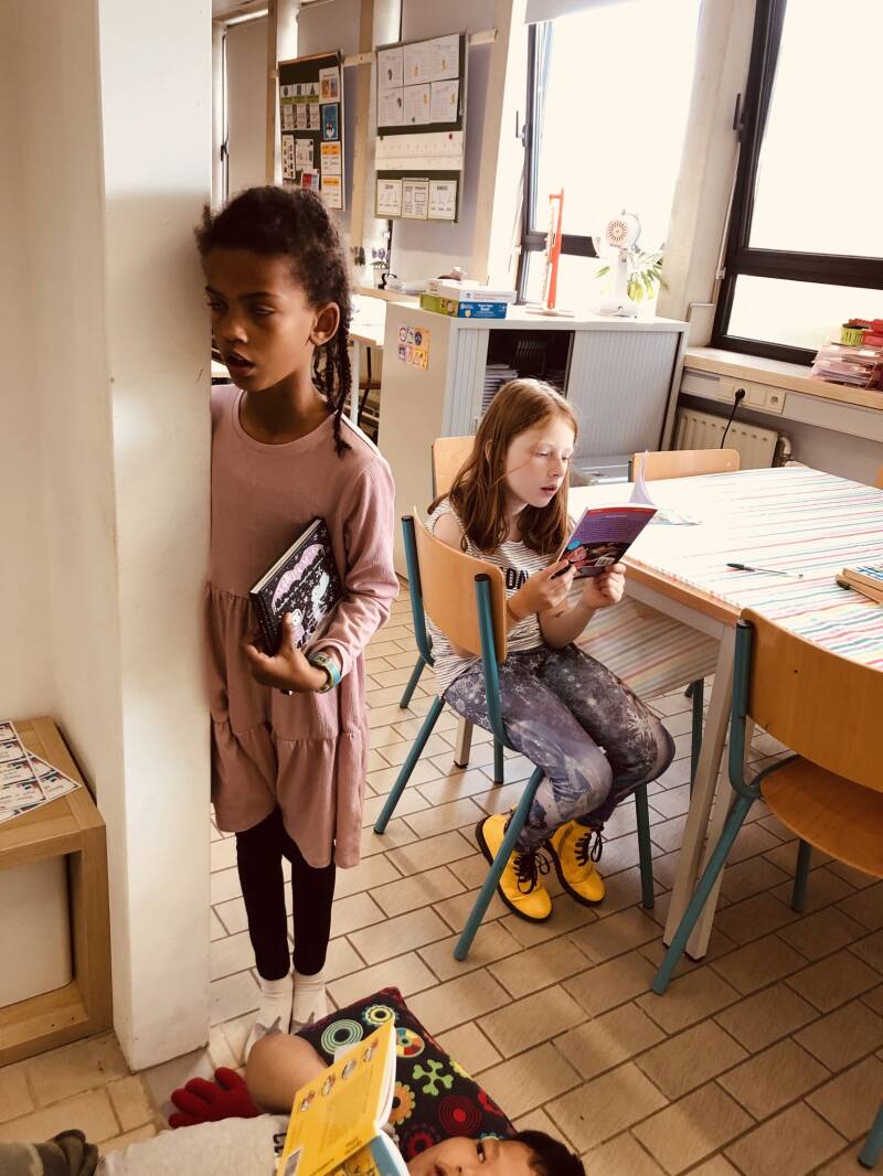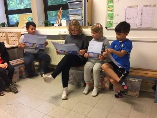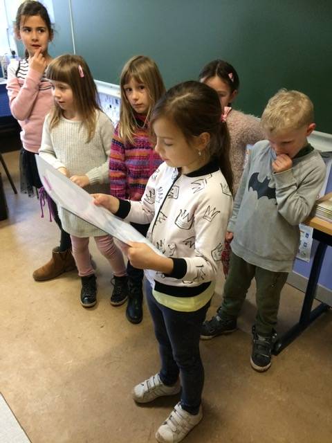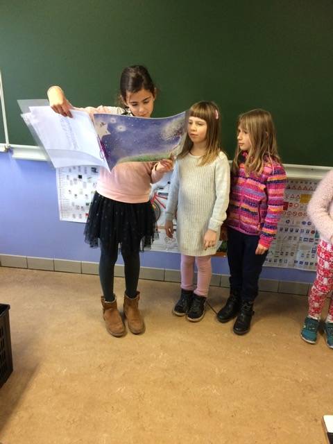 We lezen ons zelfgeschreven verhaal voor in de andere klasjes