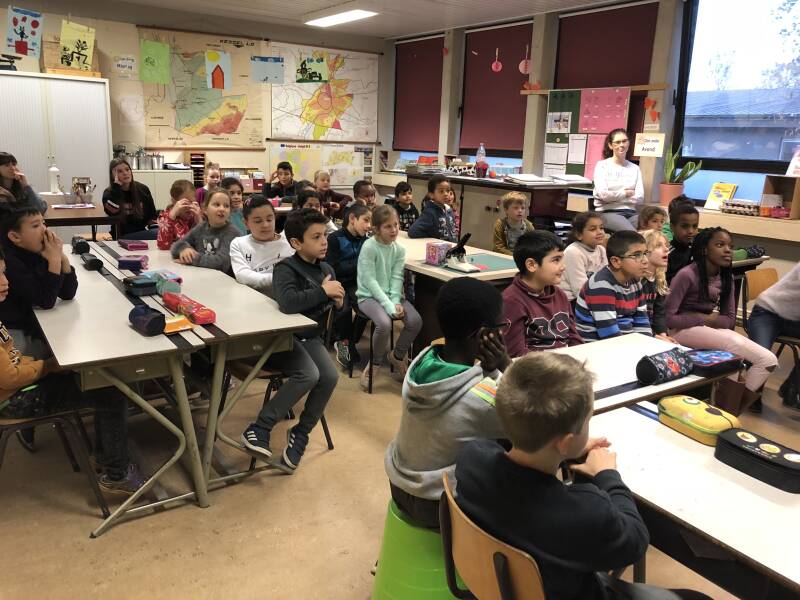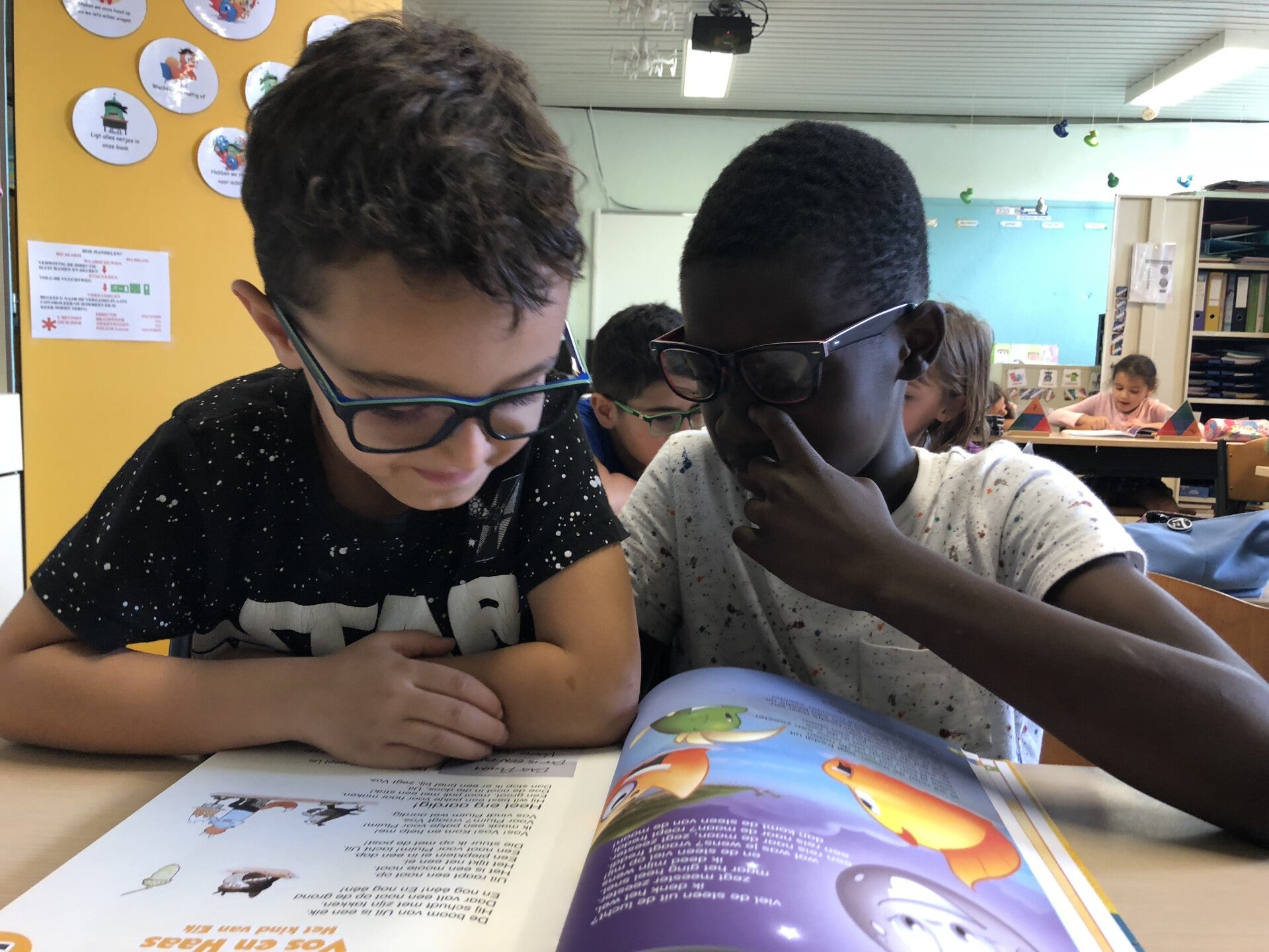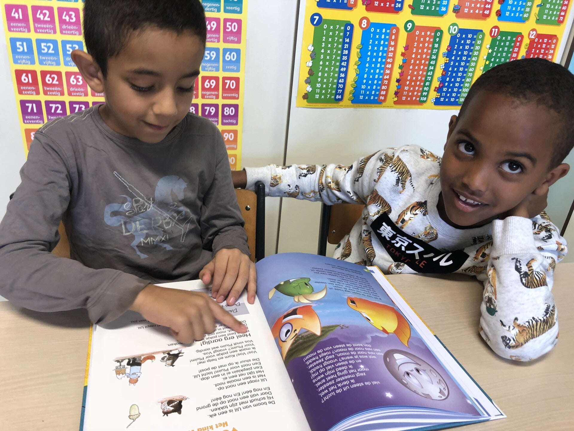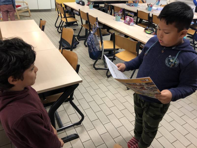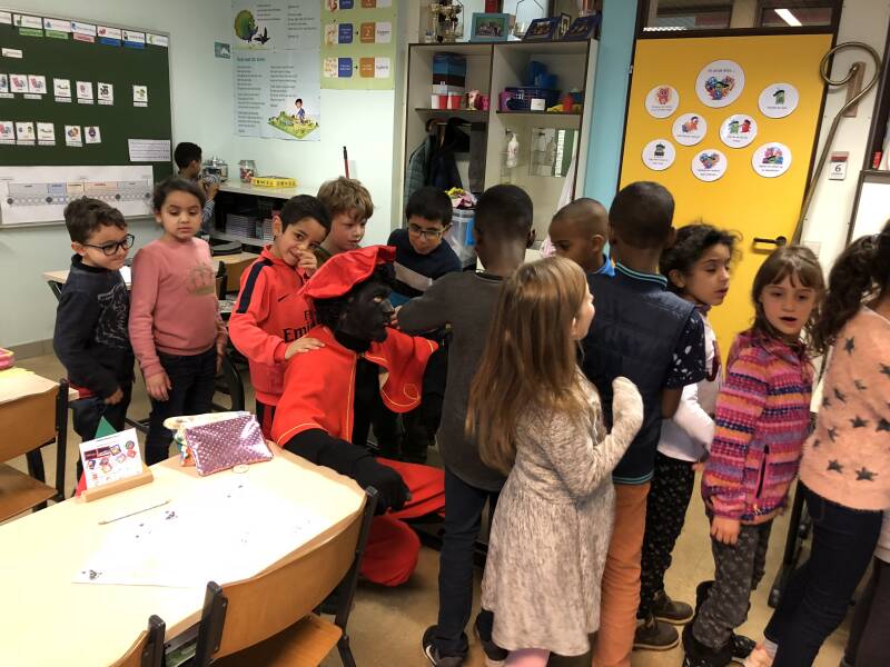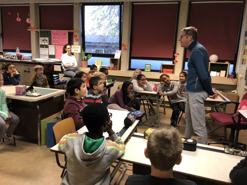 We lezen ons zelfgeschreven verhaal voor in de andere klasjes