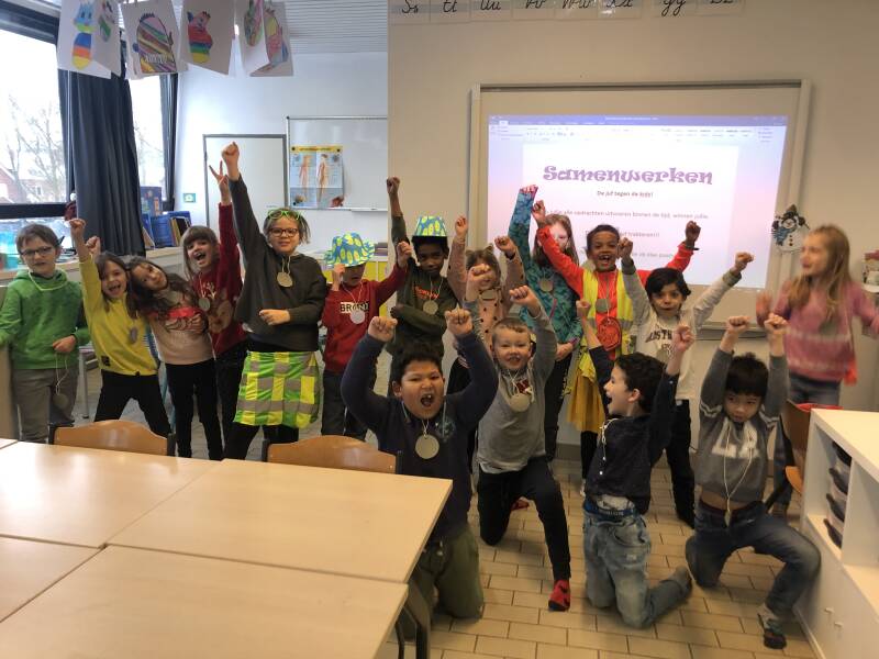 We leerden samenwerken met de hele klas in het spel 'de juf tegen de kids'! Hoera de kids zijn gewonnen. En dat samenwerken verliep best vlotter dan de juf had gedacht. Topklasje!