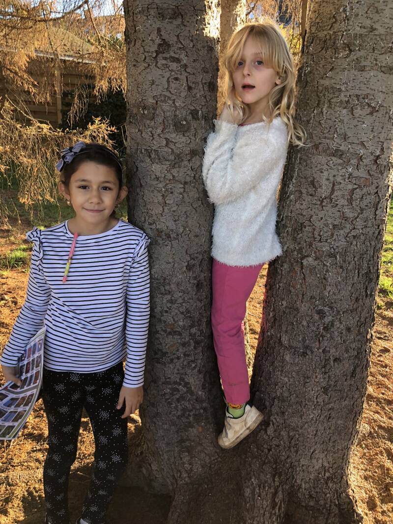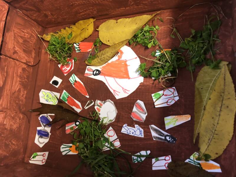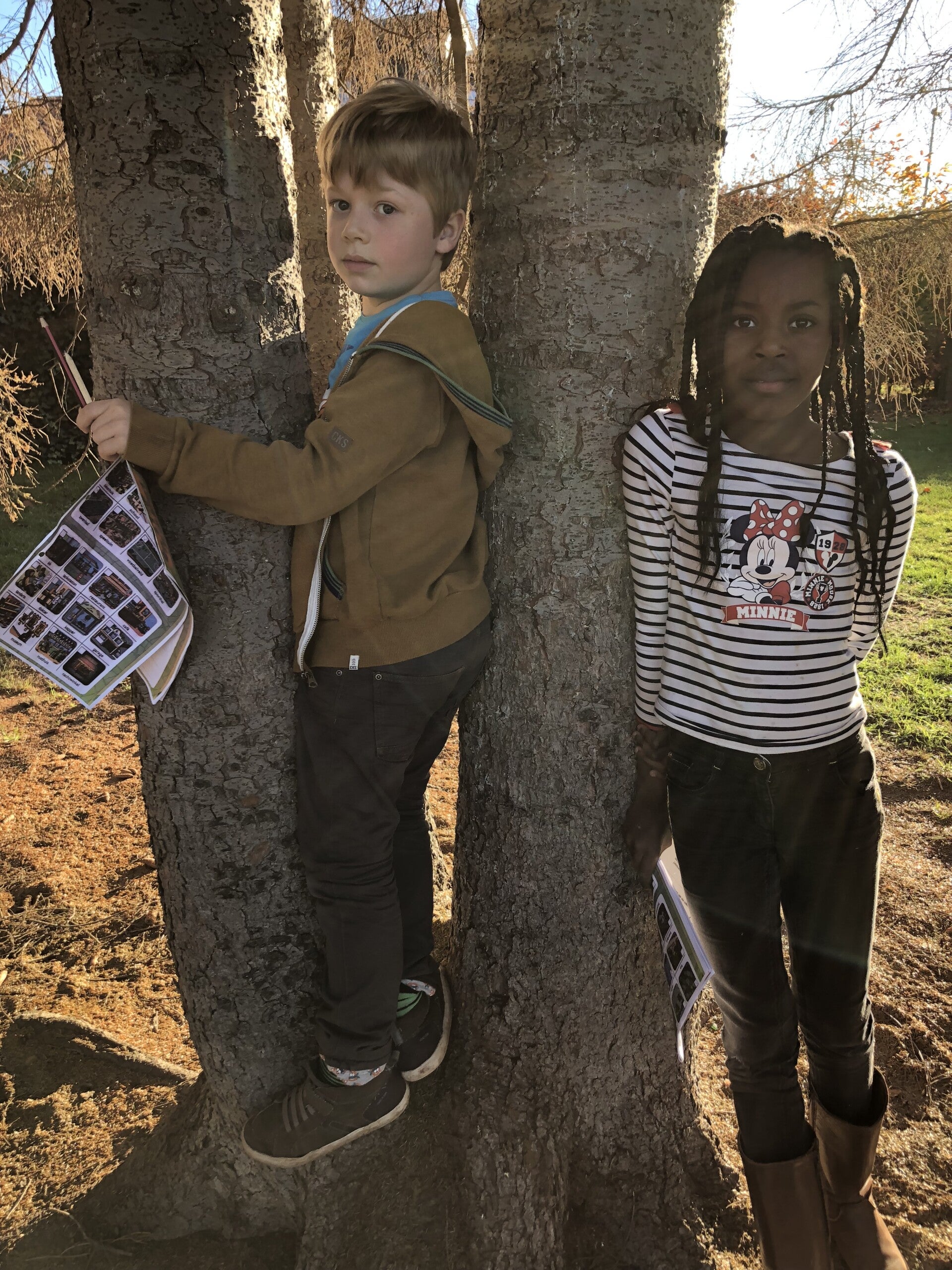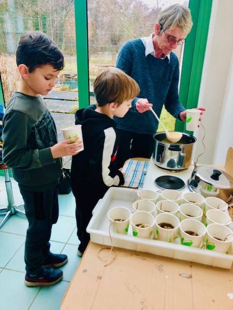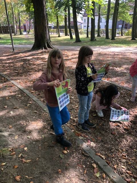 Winterwandeling - onze wenskaartjes bussen in de schoolomgeving - ondertussen zingen we een leuk liedje