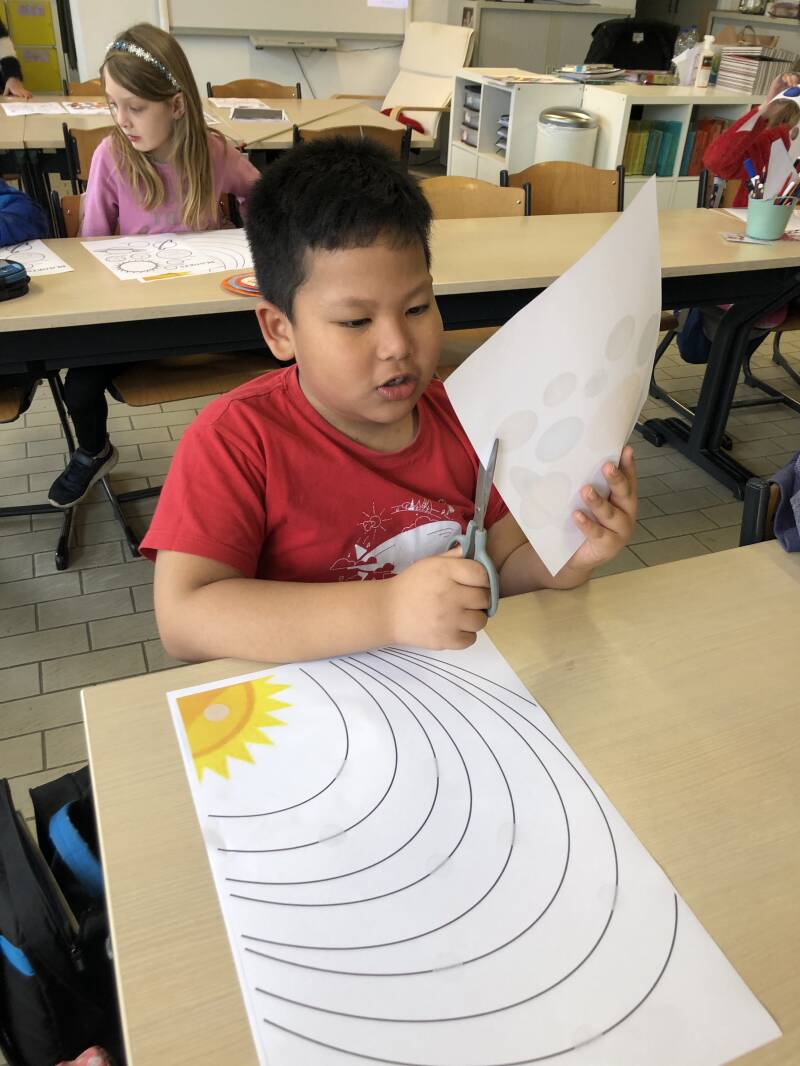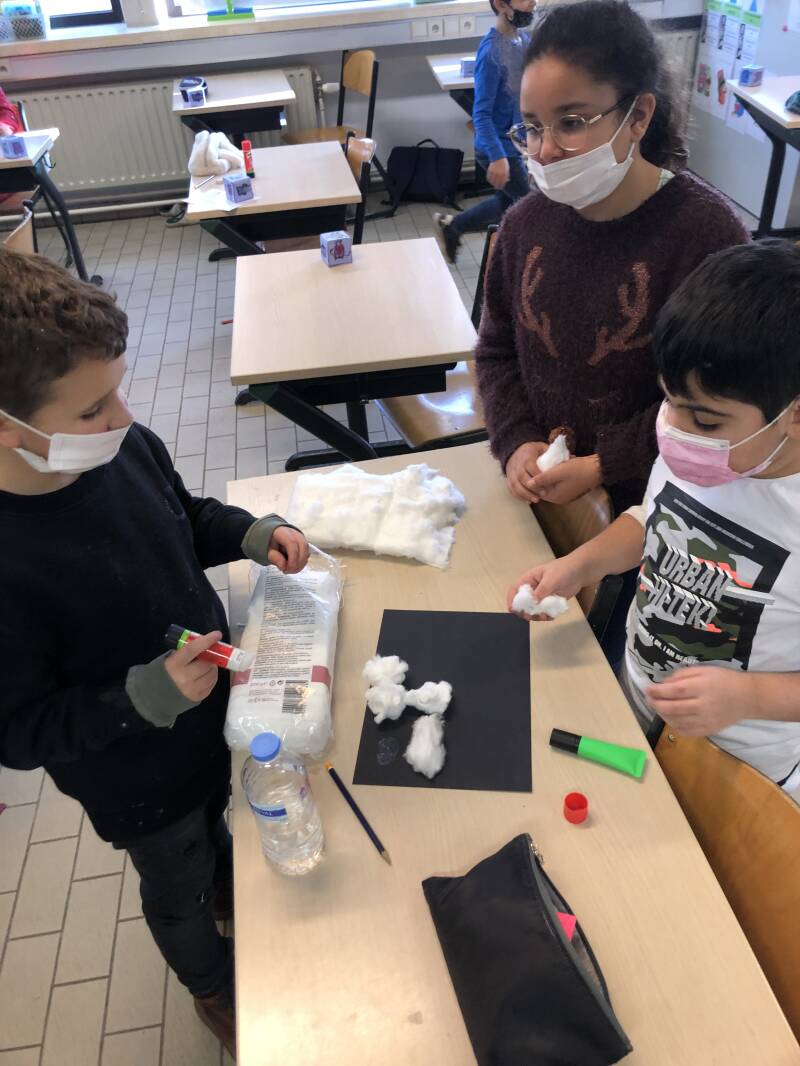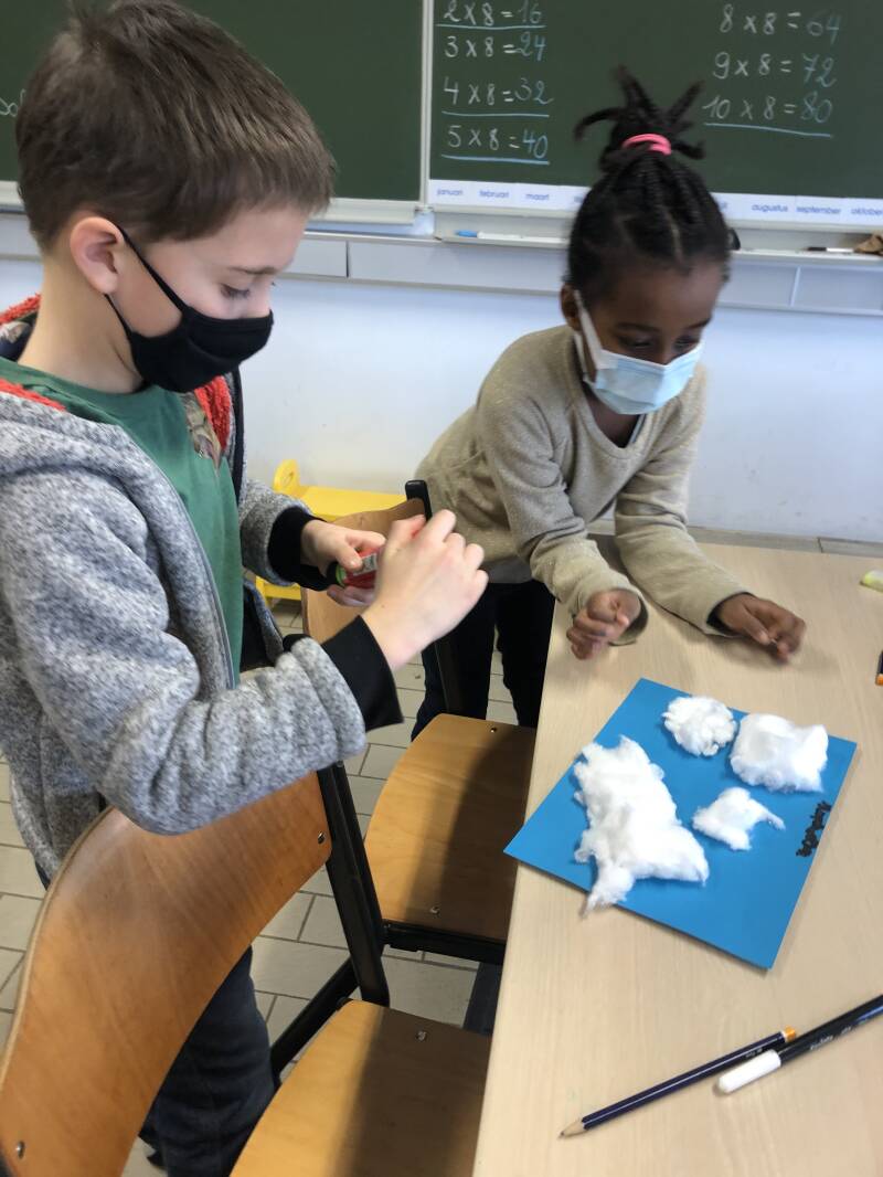 Tijdens dit project worden onze leerlingen echte wetenschappers/onderzoekers. Elke klas krijgt zijn eigen onderzoekscentrum. De neerslagklas, de temperatuurklas en de windklas. Leerlingen zoeken informatie, ontdekken wetenschap via proefjes en werken samen met de kinderen uit verschillende klassen. In de neerslagklas onderzoeken we: de kleuren van licht/regenboog, wat is zure regen?, hoe ontstaat neerslag?, welke vormen van neerslag zijn er?, hoe ziet sneeuw eruit? en we maken een regenmeter.