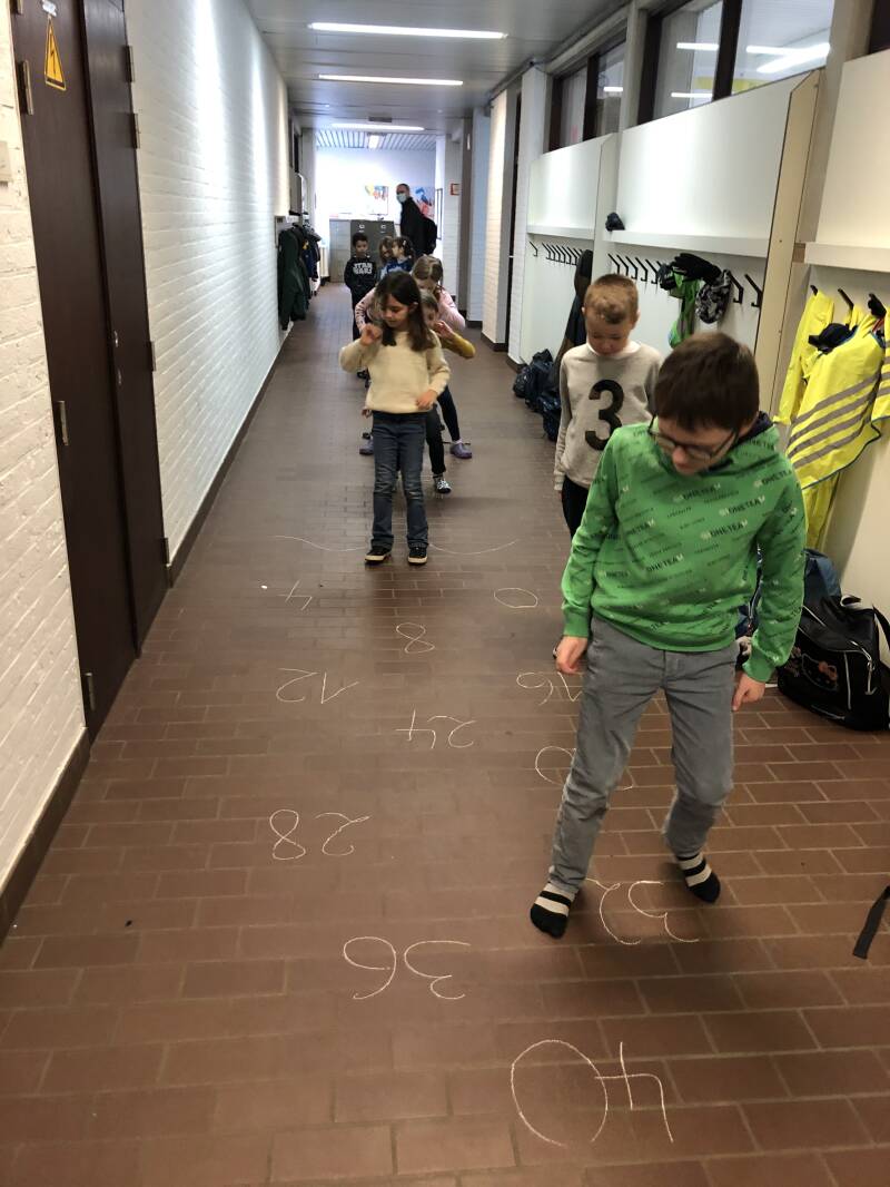 Tafels oefenen - hoekenwerk - bewegend leren