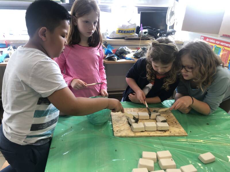 Leerlingen onderzoeken enkele technieken.